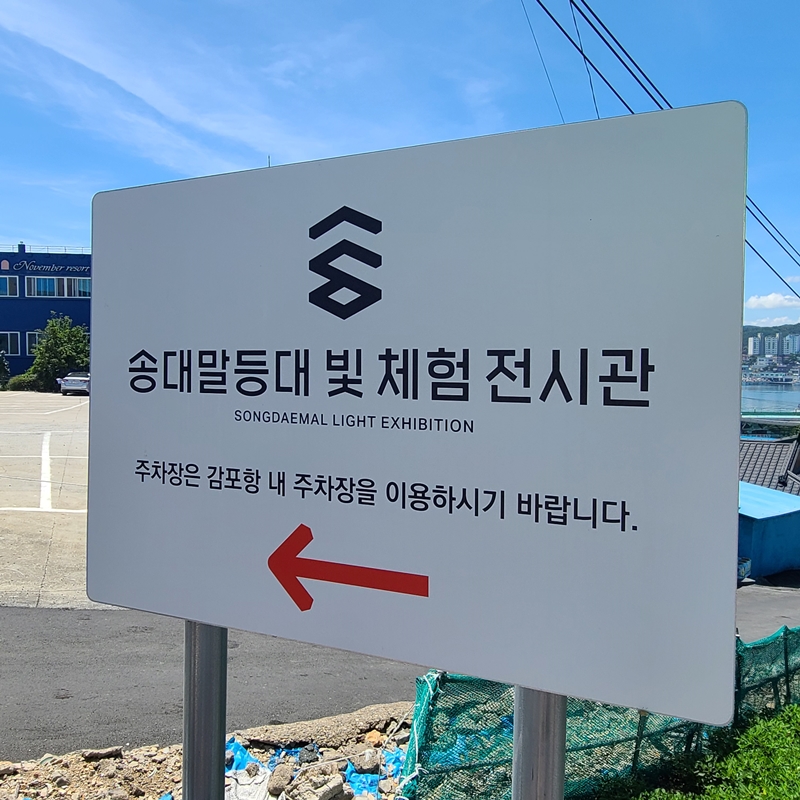 네비에 송대말 등대 또는 송대말 등대 빛 체험 전시관을 입력하고 찾아가면 되는데요~ 주차공간이 굉장히 협소하다못해 없다고 봐야 하기 때문에 감포항 내 주차장을 이용하거나 길바닥에 주차를 해야 합니다.