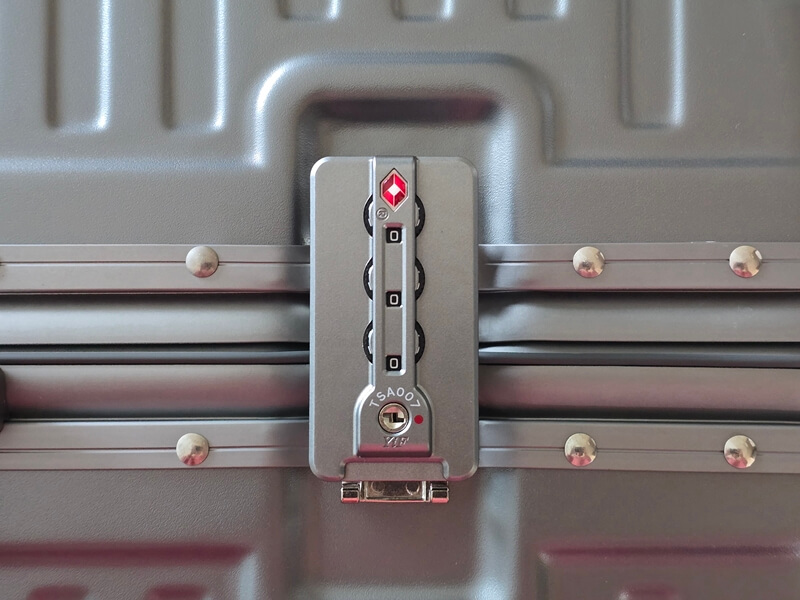리드볼트 캐리어 24인치는 잠금장치가 2개이고 미국 연방 항공 보안국 인증락인 TSA락으로 되어있어서 미국 출입 보안 검열 시 자물쇠를 손상하지 않고 보안요원이 가지고 있는 마스터키를 사용하여 가방을 연 뒤 검사를 받을 수 있어요. 단, 우리에게는 마스터키가 제공되지 않기 때문에 설정해 놓은 비밀번호는 절대 잊어버리면 안 돼요.
