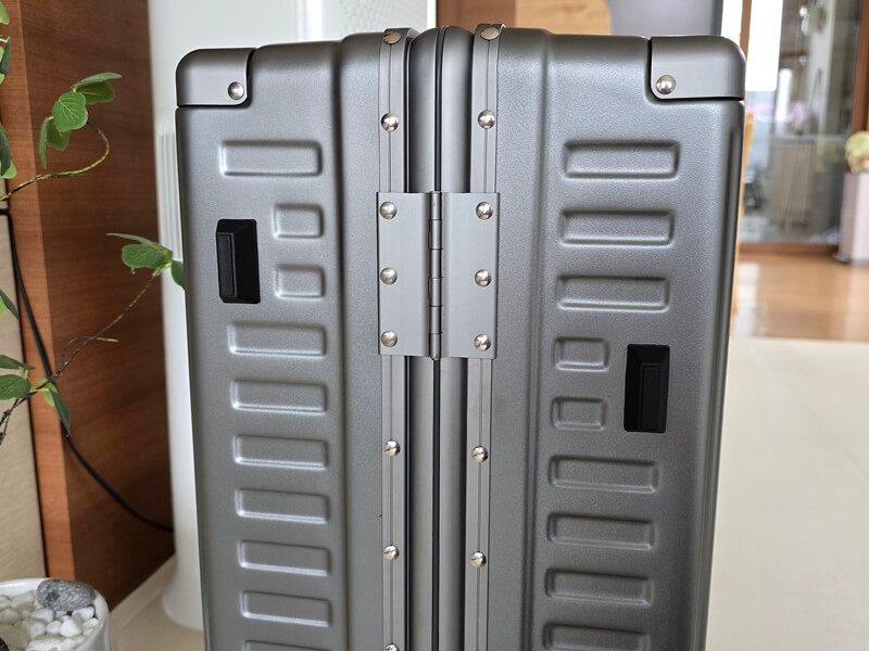 그리고 캐리어 프레임도 지퍼가 아닌 알루미늄 소재를 사용해서 파손과 도난에도 강하죠~ 지퍼형은 아무래도 칼로 그으면 금세 찢어져버리니까요.