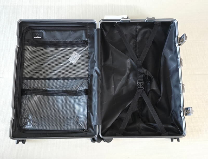 캐리어를 열어 내부를 보면 다른 캐리어들과 크게 다른 점은 없지만 안감이 부드럽고 고급 지퍼를 사용해서 지퍼를 열고 닫을 때도 부드럽더라고요.