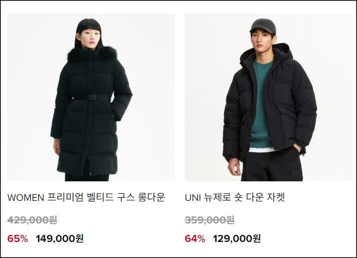 올 겨울은 최강한파가 올거라는 이야기들이 많아서 다운 패딩은 필수 아닌 필수가 되었는데요~ 뉴발란스 블랙프라이데이 멤버스위크에서는 숏 다운 패딩뿐만 아니라 구스 롱 패딩 상품들을 최소 30% ~ 최대 65% 할인가로 구매할 수 있어요. 특히, 여성용 프리미엄 벨티드 구서 롱다운을 65% 할인해 149,000원에 선보인다는 건 대박이더라고요.