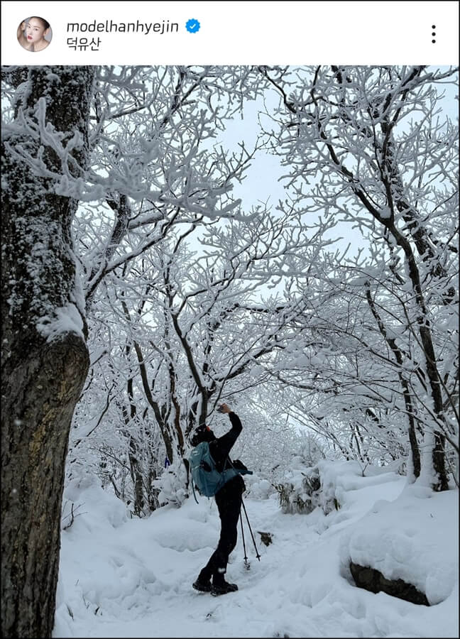 어제인가 인스타를 보니 모델 한혜진 님도 덕유산에 등산을 갔다 오셨더라고요. 저번주까지 전북에 눈이 굉장히 많이 내려서 제대로 된 설산을 즐길 수 있는 기간이었는데 사진 보니 역시나 너무 멋져서 꼭 한번 가보고 싶다는 생각이 들었어요.
