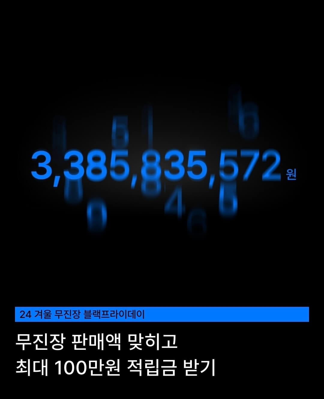 무엇보다 무신사 블랙 프라이데이 2024에서 가장 큰 눈길을 끄는건 무진장 판매액 맞추기 이벤트가 아닐까 싶은데요~ 매일 달성하는 무진장 누적 판매액을 가장 근접하게 맞춘 1인에게 최대 100만 원 쇼핑 지원 쿠폰을 지급한다고 해요. 11월 29일부터 추가 99명에게는 5만 원 적립금을 지급한다고 하니 매일매일 참여해 보는 게 좋겠죠?