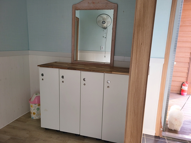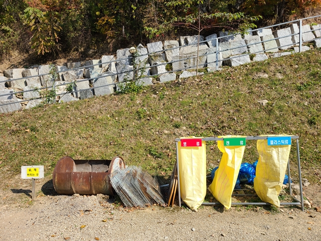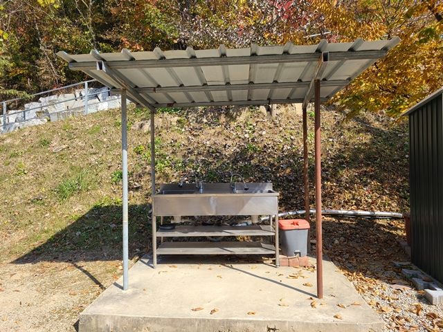 위의 사진속에서 보이는 부대시설은 B사이트에 자리 잡고 있는 부대시설로 두 개의 개수대와 분리수거장, 화로대 씻는 곳, 간이 화장실이 있었으며 처음엔 샤워실이 없는 건가 싶었는데 샤워실을 포함한 더 넓은 화장실 및 부대시설과 전자레인지 같은 건 A사이트와 B사이트 본관 매점 건물에 놓여있었어요.