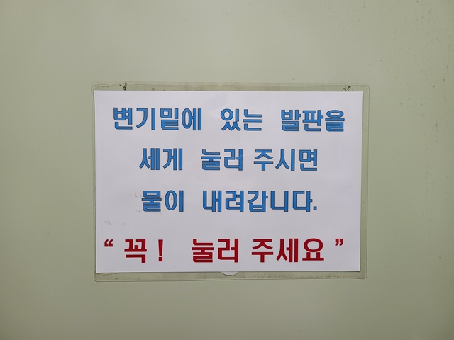 사이트에 자리잡고있는 화장실은 깨끗한 편이었고, 발로 발판을 세게 밟아서 물을 내리는 형식의 변기가 놓여있었어요. 그리고 휴지는 별도로 챙겨야 합니다.