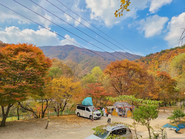 덕유산 자락에 자리잡고있는 캠핑장이라서 오토바이 라이더들이 지나가는걸 정말 많이 볼 수 있었는데요~ 오토바이 소리에 시끄럽기도 했지만 그래도 눈요기하는 재미도 쏠쏠했습니다.^^ 사장님도 굉장히 친절하셨고, 관리도 잘 되어있는 것 같아서 전북 인근에 애견동반이 가능한 단풍캠핑 가능한 곳 찾으신다면 무주 구천동 캠핑장 추천합니다.