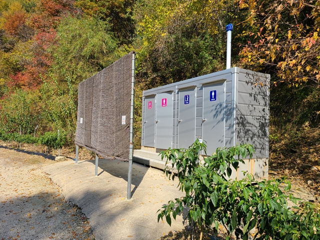 b사이트에서 이렇게 가파른 언덕을 올라가야 본관 부대시설을 이용할수있고, 거기서 조금 더 올라가야 A사이트에 다다를 수 있다 보니 화장실도 그냥 B사이트에 자리 잡고 있는 부대시설들을 주로 이용했습니다.