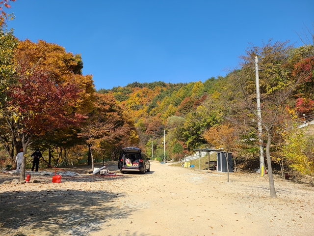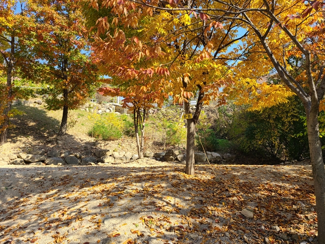 A사이트는 사진을 대충 한번만 찍어왔는데요~ 무주 구천동 캠핑장에서 가장 높은 곳에 자리하고 있는 A사이트는 본관에 있는 편의시설을 이용하면 돼서 그런지 별도의 부대시설은 없었던 걸로 기억합니다. 그리고 각 사이트 사이사이에 단풍나무가 풍성하게 있었던 건 아니지만 지대가 높아 덕유산 뷰를 볼 수 있어 나쁘지 않았던 것 같아요.