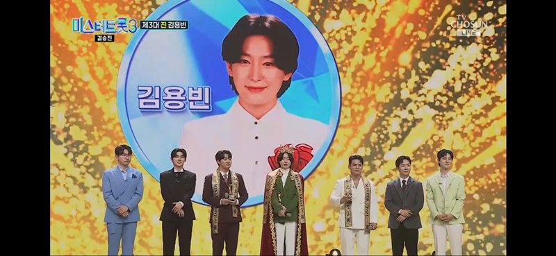 그럼 가장 궁금해하실 미스터 트롯3 순위 결과를 먼저 정리해 보자면 7위 추혁진, 6위 남승민, 5위 최재명, 4위 춘길, 3위 천록담, 2위 손빈아, 1위 김용빈 순으로 이름을 올렸어요. 즉, 김용빈이 새로운 진이 되었고, 손빈아가 선, 천록담이 미가 되었죠~