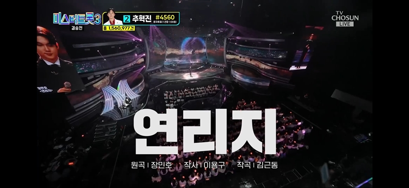 삼수생 끝에 드디어 결승전에 오른 추혁진은 두 번째로 무대에 올라 주병선의 들꽃을 선곡하여 오직 노래로만 승부를 걸었어요. 이날 새롭게 생긴 한류스타상을 뽑기 위해 미스터트롯 재팬 마스터 다카하시 요코도 마스터석에서 함께했는데 추혁진의 무대를 본 요코는 또래여성이나 젊은 층에서 인기가 굉장히 많을 것 같다는 평을 했어요. 그렇게 마스터 점수 최고점 99점, 최저점 90점을 받았어요.