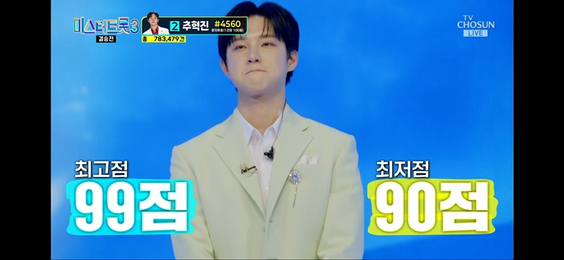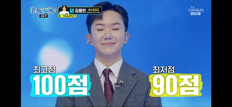 미스터 트롯이 현재 세 번째 시즌인데 역대 시즌에서 유례없는 점수를 받은 주인공으로 최저점까지 100점이 나왔으니 마스터 점수는 총 1500점을 획득한 거예요.