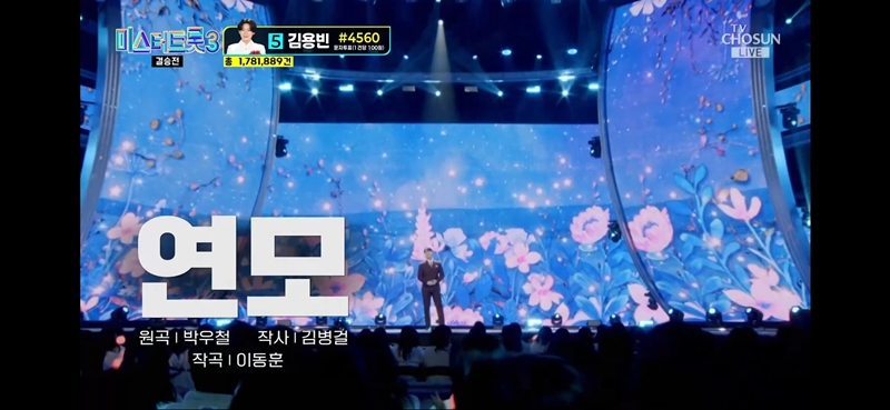상큼한 미소를 보이며 다섯 번째로 무대에 오른 김용빈은 돌아가신 할머니 유언으로 미스터 트롯3에 참가한 거였는데요~ 그런 할머니를 향한 마음을 담아 나훈아의 감사를 선보였고, 눈물을 참으면서 무대를 이어갔어요. 마스터들의 눈물을 자아낸 김용빈은 마스터 점수 최고점 100점, 최저점 95점을 받으면서 강력한 우승후보가 되었어요.