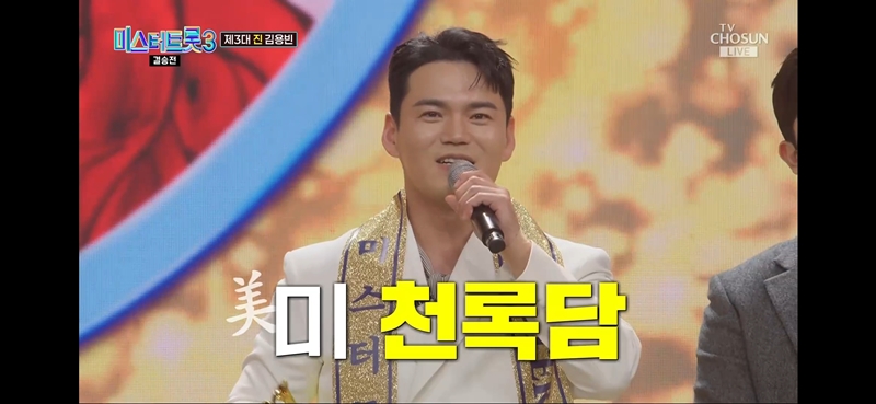 그럼 가장 궁금해하실 미스터 트롯3 순위 결과를 먼저 정리해 보자면 7위 추혁진, 6위 남승민, 5위 최재명, 4위 춘길, 3위 천록담, 2위 손빈아, 1위 김용빈 순으로 이름을 올렸어요. 즉, 김용빈이 새로운 진이 되었고, 손빈아가 선, 천록담이 미가 되었죠~