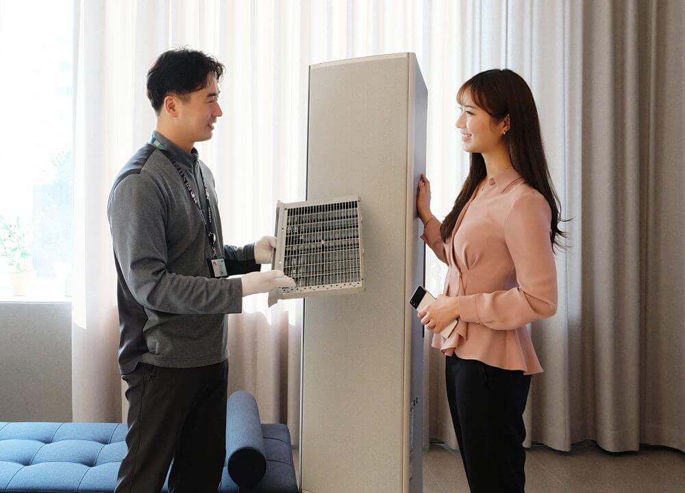 삼성 에어컨 서전점검 서비스는 고객이 먼저 자가점검을 한 뒤 이상을 발견한 후 삼성 에어컨 무상점검 신청을 하면 전문 엔지니어에게 체계적인 제품 점검을 받을 수 있는데요~ 스탠드 에어컨뿐만 아니라 가정용 시스템 에어컨도 자가점검 먼저 해보고 신청하면 동일하게 서비스를 받아볼 수 있어요. 그렇게 삼성 에어컨 사전점검 서비스를 신청한 고객들은 출장비를 포함한 공임비 무료 혜택이 제공됩니다. 단, 부품 교체가 필요할 경우에는 부품 비용은 유상처리되니 참고하세요.