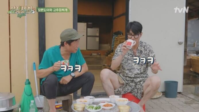 모든 출연진들이 좋았지만 유독 차승원과 유해진이 서로 주고받는 티키타카가 많은 사랑을 받았고, 그래서 그런지 이 두사람이 출연했던 시리즈가 시청률이 조금 더 높긴 하더라고요. 모든 음식을 뚝딱 만들어내는 차승원과 배려심 많은 유해진이 그려내는 모습이 보기만 해도 웃음 짓게 만들었었는데 이번 삼시세끼 라이트에서도 역시나 그대로더라고요.