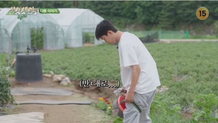 그렇게 대선배들을 처음 만나러 가는길에 극도로 긴장한 임영웅은 한 손에는 수박을 그리고 한 손에는 화분을 사가지고 세끼 하우스에 찾아옵니다. 화분 사 오는 사람 처음이었어서 신기했어요^^