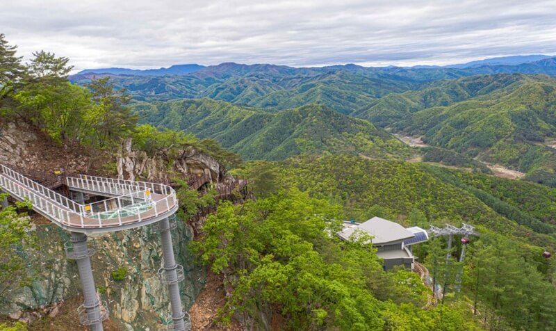 삼악산의 4계절을 느낄 수있는 삼악산 호수케이블카는 산책길과 스카이워크도 꽤 유명한곳인데요~ 스카이워크 산책길은 바닥이 투명한 유리로 되어있기 때문에 하늘을 걷는듯한 기분을 느낄수 있고, 춘천 시내를 한눈에 담을수 있으며 삼악산의 경치 또한 느낄수 있어요.