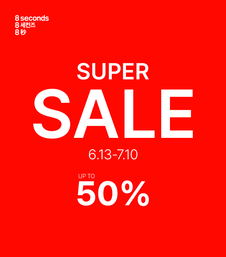 온라인몰에서 하루 먼저 슈퍼세일이 시작된 에잇 세컨즈 세일기간은 7월 10일까지인데요~ 최대 50%까지 할인된 상품들을 만나볼수 있어요.