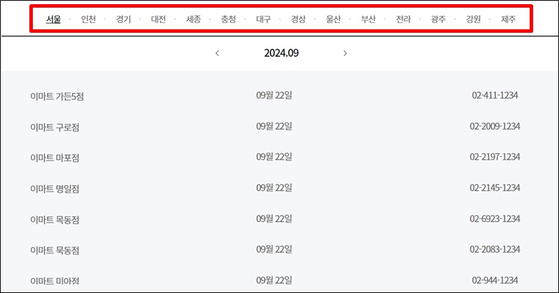 이마트 추석연휴 휴무일은 점포에 따라서 휴뮤일 없이 추석 당일에도 정상 영업 한다고 하는데요~ 총 131개 점포 중 산본점, 동탄점, 남양주점 등 42개의 점포가 추석 당일에 휴점 하는데 위의 우리 동네 이마트 휴무일 보기로 들어가면 지역별로 이마트 추석연휴 휴무일을 조회할 수 있으니까 참고하세요.