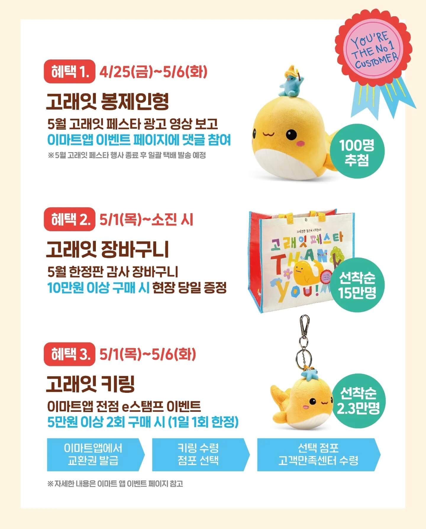 무엇보다 이마트가 32년 동안의 업력을 발휘하여 각종 먹거리와 생필품 등을 업계 최저가 수준의 가격으로 선보이는 응(%) 가격도 고래잇 페스타와 동시에 진행되기 때문에 지금까지 진행해 왔던 고래잇보다 훨씬 더 풍성한 할인 행사가 될 것 같아요.