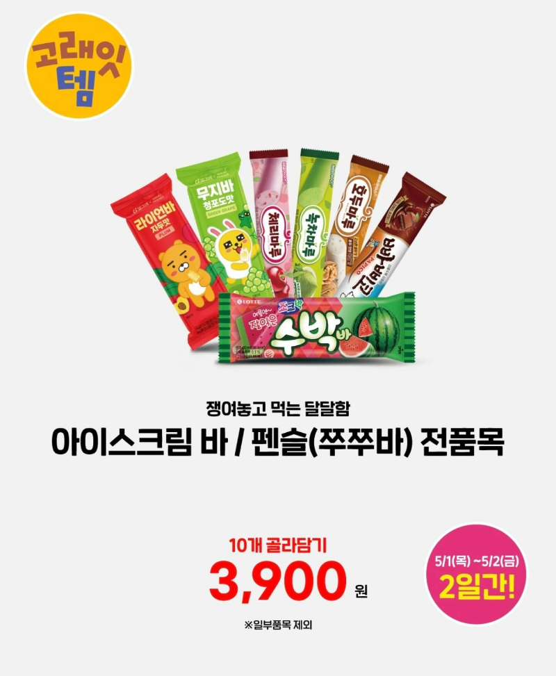 이마트 전단광고 행사하면 빠질 수 없는 게 골라 담기 행사잖아요? 5월부터 1일 ~ 2일까지 아이스크림 바/쭈쭈바 전품목 10개를 3,900원에 판매하는 아이스크림 골라담기 행사가 진행되고, 5월 3일 ~ 6일까지는 스택, 봉지라면, 즉석밥, 즉석국탕 전품목에 대해 골라담기 행사가 진행돼요.
