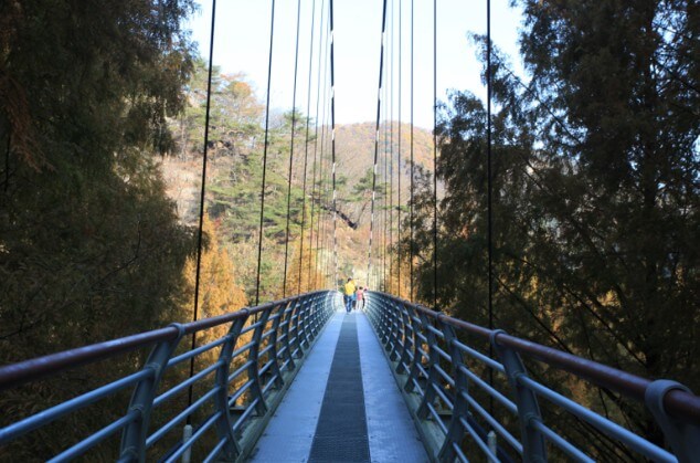 장태산 하면 가장 유명하고 많이 볼수있는 사진이 위의 출렁다리 사진인데요~ 가까운 곳에 주차장이 있지만 장태산 자연휴양림 단풍시기가 되면 주차장은 만차이기 때문에 이런 점은 참고해서 방문해야 해요.