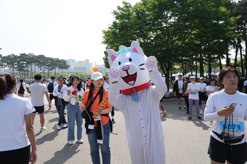 앞서 얘기했듯이 올해는 대회코스를 한강대교로 변경하면서 10km 코스를 더욱 강화했다고 하는데요~ 10km 코스는 평화광장(출발) > 경기장 R > 구룡 R > 가양대교 > 가양대교 남단(반환점) > 구룡 R > 경기장 R > 평화광장(골인)으로 되돌아오는 코스예요.