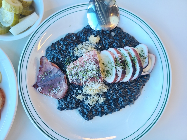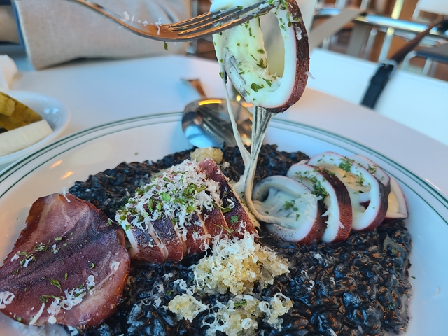 저희는 오징어먹물 리조또와 새우가 들어간 오일 파스타 감베론을 주문했는데 파스타는 양이 살짝 적게 느껴지긴 했고 리조또는 양이 꽤 많게 느껴져 먹다 보니 느끼해가지고 다 먹지 못해 아쉬웠어요 ㅠ 그래도 직원분도 친절하고, 분위기가 캐주얼하고 뷰도 좋아서 다음에 또 찾아가고 싶은 천안 성성동 맛집이었네요~