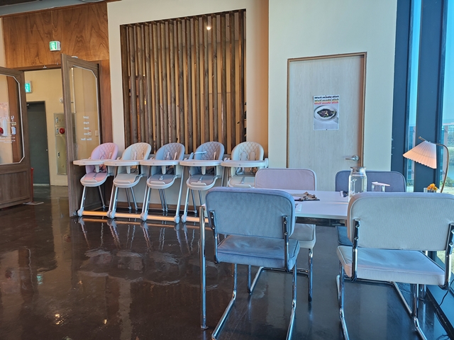 5층에서 내려 내부로 들어가면 오른쪽엔 와인이 전시 되어있었고, 왼쪽으로는 유아 식탁이 준비되어있었는데요~ 천안 성성동 우아한빛 매장 자체가 굉장히 넓고 성성 호수공원 뷰를 볼 수 있는 곳이다 보니 시야가 탁 트여서 답답한 느낌이 없는 곳이라서 더 좋았어요.