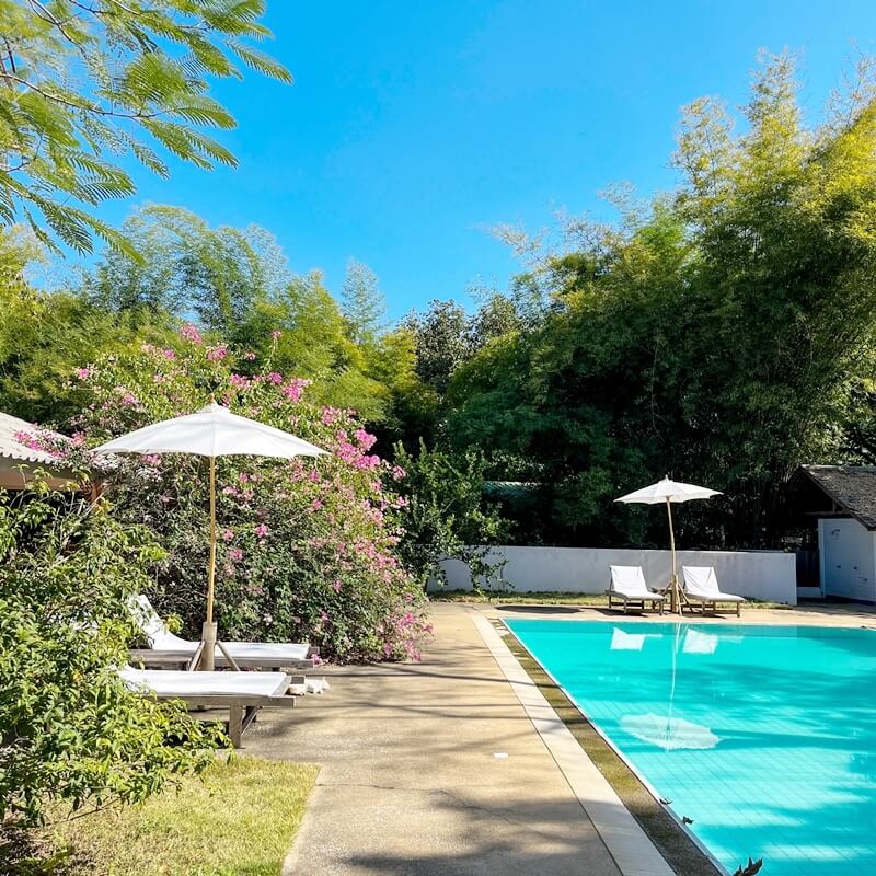2박을 했던 호시하나 빌리지는 앞서 말했듯이 치앙마이의 번화가에서 멀리 떨어진 항동에 위치하고있는데요~ 치앙마이 항동은 시골이다 보니 숙소 근처에 슈퍼나 편의점 같은 게 없다 보니까 살짝 불편할 수도 있어요. 마야몰에서 호시하나까지 볼트 타면 30분가량 걸리는데 그럼에도 불구하고 치앙마이 숙소로 추천하는 이유는 숙소가 너무 감성 있는데다 모든 룸이 독채로 되어있어요. 우리는 또 감성 포기 못하잖아요? 주인이 일본사람(?)이어서 그런지 일본감성이 엄청난 곳이고, 실제 일본 영화 수영장 촬영지이기도 해요.