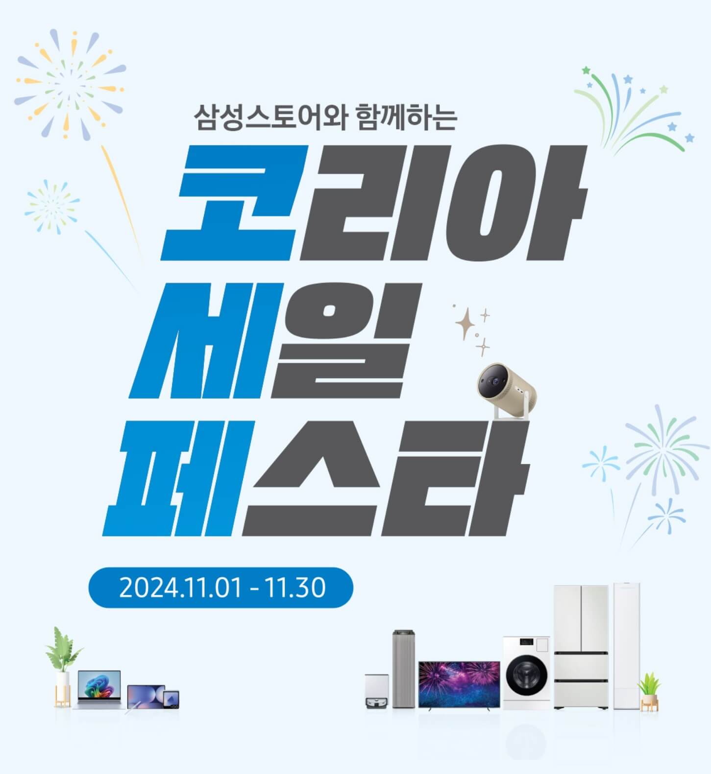 공식적인 삼성 스토어에서 진행되는 삼성전자 코리아 세일 페스타는 11월 1일부터 11월 30일까지 한 달 동안 진행되는데요~ 올해로 9년째 코세페에 참여하고 있는 삼성전자에서는 스마트 패키지와 AI패키지를 새롭게 선보인 다고 해요.