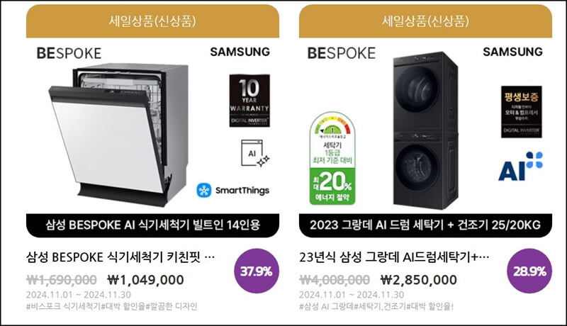 코리아 세일 페스타 삼성전자 품목으로는 TV, 인덕션, 세탁기, 식기세척기, 냉장고, 김치냉장고, 청소기, 에어컨, 스타일러 등 모든 가전제품들이 포함되며 삼성 세일 페스타 전체 품목 보기로 들어가면 제품들과 할인가격까지 한 번에 확인할 수 있어요.