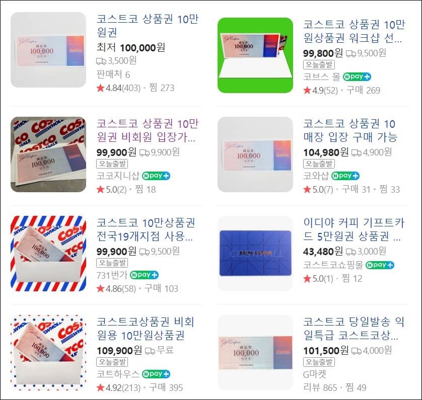 가장 많이 사용되는 코스트코 회원권 없이 가는 방법은 일일 이용권 역할을 하는 코스트코 상품권을 사용하는 방법인데요~ 코스트코 상품권은 회원권 없이도 오프라인 매장에서 현금처럼 사용할 수 있어요. 오프라인 매장에서 구매할 수도있지만 온라인에서도 쉽게 구매할수 있고, 상품권은 10만 원 단위로 판매되지만 잔액은 현금으로 돌려받을 수 있고요. 게다가 상품권 1장으로 최대 3명까지 코스트코 매장에 입장이 가능하기 때문에 어쩌다 한번 가는 것이라면 코스트코 회원가입비를 내고 회원권을 구매하는 것보다는 상품권을 구매하는 게 훨씬 합리적일 수 있어요.