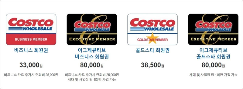 이그제큐티브 비즈니스 회원권과 코스트코 회원가입비가 8만 원으로 똑같은 이그제큐티브 골드스타 회원권은 이그제큐티브 비즈니스 회원권과 똑같은 혜택을 받을 수 있지만 카드 추가는 불가능해요.