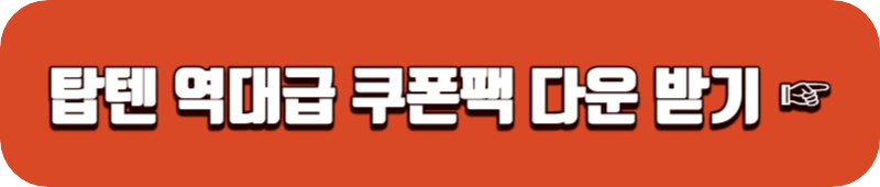 몇 시간 전에 홈플러스 할인 소식을 전해드렸는데요~ 탑텐도 역대급 할인이 들어간다고 하여 이번에는 탑텐 세일 및 1+1 상품 몇 가지를 추천해 드리는 포스팅을 해볼까 해요. 7만 원 이상 결제 시 5천 원 즉시할인뿐만 아니라 역대급 할인쿠폰팩도 증정하니까 평소 SPA 브랜드를 좋아하신다면 오늘 포스팅 주목해 주세요.