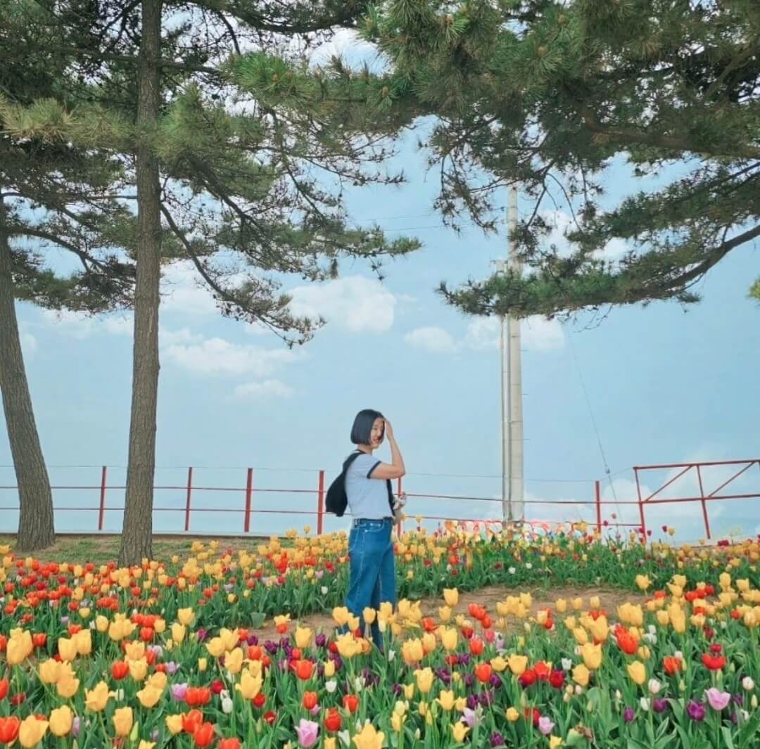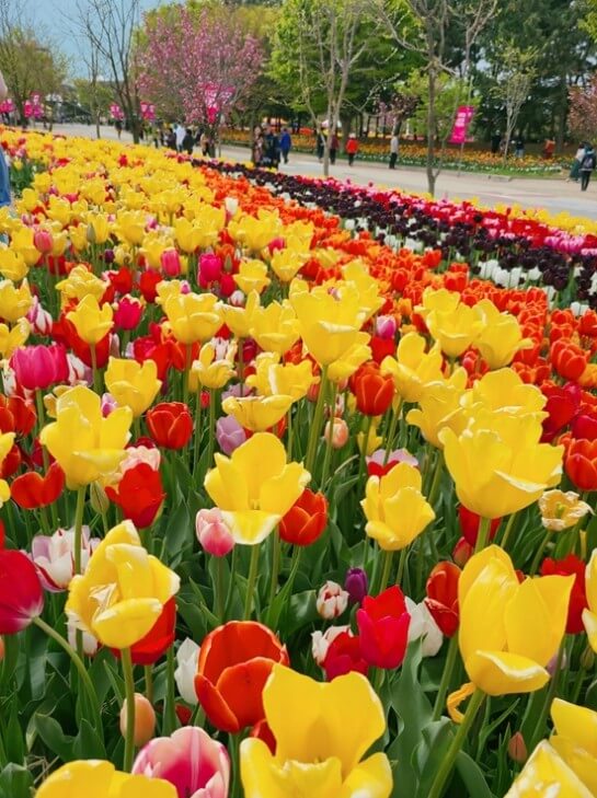 튤립축제가 열리는 태안 코리아플라워파크는 튤립축제 기간에 방문하면 평생 볼 튤립을 여기서 다 볼 수 있어요. 그마만큼 부지가 굉장히 넓기 때문에 사람이 많다고 하더라도 사람이 걸치지 않게 사진 찍기도 가능해서 좋더라고요.