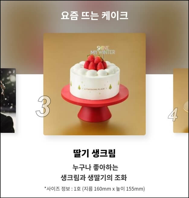 그리고 15% 할인이 들어가는 케이크 종류로는 크리스마스 시즌에 맞춘 홀리데이 산타, 윈터 스트로베리 무스, 초콜릿 브라우니 루돌프, 스노우 포레스트, 스트로베리 샤를로뜨, 윈터 홀리데이 타운, 투썸 오벌 티라미수, 투썸 해피데이 베어, 아박 홀케이크, 레드벨벳이 있고요.