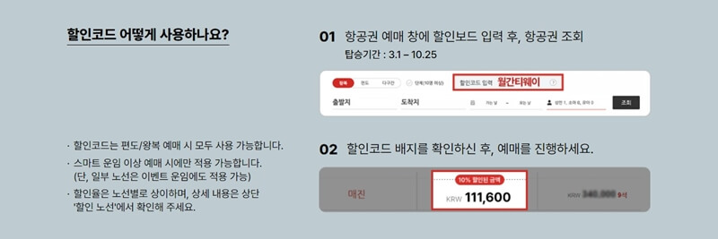 티웨이항공 할인코드는 편도 및 왕복 예매 시 모두 사용이 가능한데요~ 항공권 예매창에 할인코드(월간티웨이) 입력 후 항공권을 조회한 뒤 할인코드 배지를 확인하고 예매를 진행하면 돼요.