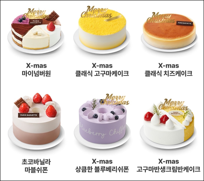 파리바게뜨 사전예약으로 구매할 수 있는 케이크는 윈터베리 타르트, 위싱트리 케이크, 산타요정 케이크, 위시케이크, 산타마을 꼬마병정, 홀리데이 진저맨, 해피 홀리데이 케이크, X-mas 블레싱레드베리, X-mas 마이넘버원, X-mas 클래식 고구마케이크, X-mas 클래식 치즈 케이크, 초코 바닐라 마블 쉬폰, X-mas 상큼한 블루베리 쉬폰, X-mas 고구마반 생크림반 케이크, X-mas 초코반딸기반 케이크, 우유 퐁당 생크린, 우유 가득 생크림, 시그니처 생크림, 크리스마스 생크림 케이크 등 종류가 굉장히 다양해요.