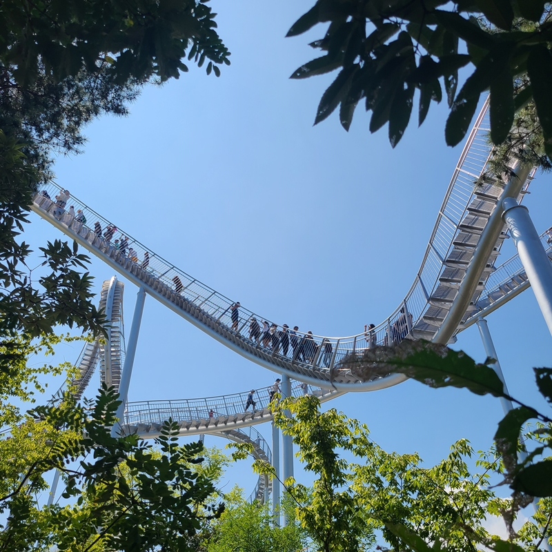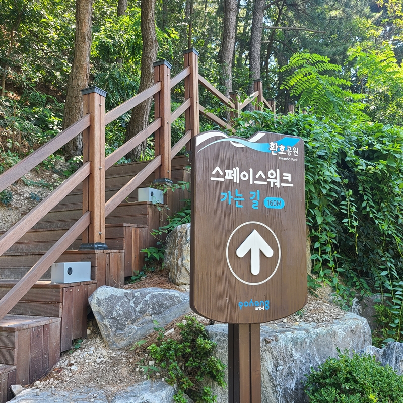3주차장을 기준으로 우측에 있는 언덕을 따라 쭉쭉 올라가다 보면 스페이스워크 가는 길 푯말을 볼 수 있는데요~ 이 푯말을 따라 3분 ~ 5분 정도 올라가면 포항의 랜드마크인 스페이스워크를 만나볼 수 있어요. 환호공원 어디로 입장을 하더라도 스페이스워크로 가는 길은 나오지만 그나마 이 길이 제일 가까운 것 같고, 그래도 모르겠다 하시는 분들은 사람들이 가는 방향으로만 따라가면 됩니다.