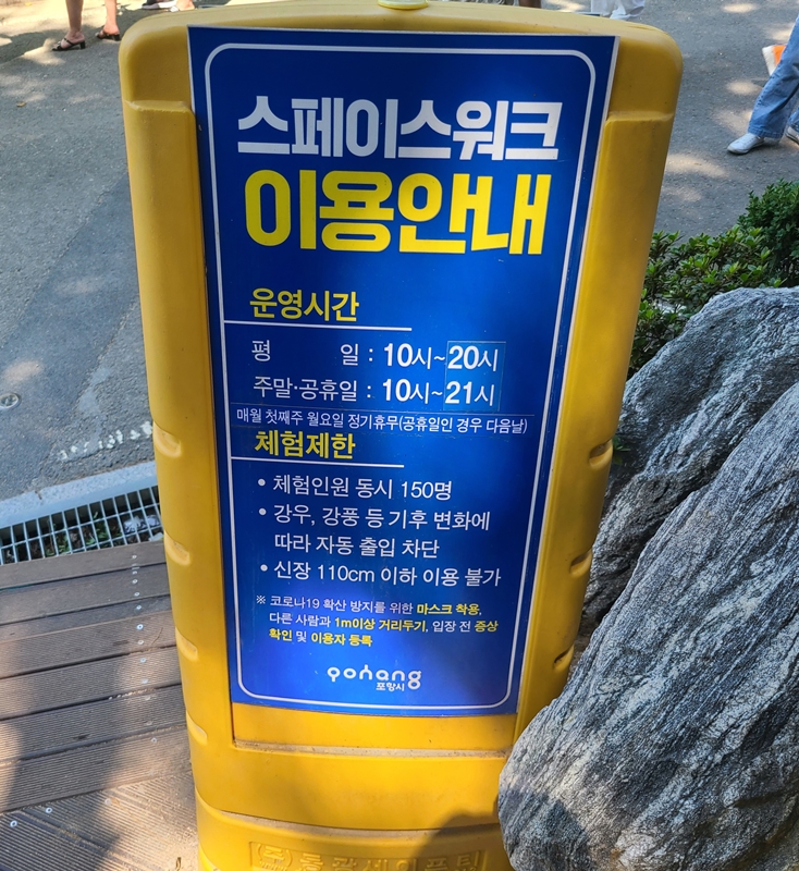 무엇보다 포항 스페이스워크는 해가 쨍쨍 내리쬐는 한가운데 떡하니 자리 잡고 있는 데다 그늘막 하나 없는 구조물이기 때문에 여름에는 더운 걸 감수하고 가야 하고, 낮에도 멋있지만 해가 질 때나 야경으로는 더 멋있다고 하니 여름에는 해가 질 때쯤 방문하셔도 좋을 것 같아요.