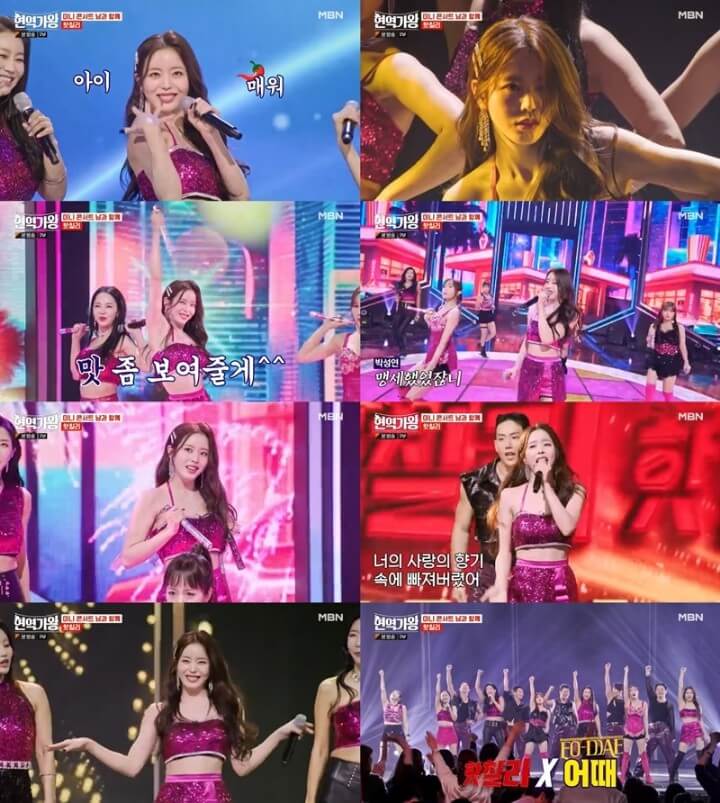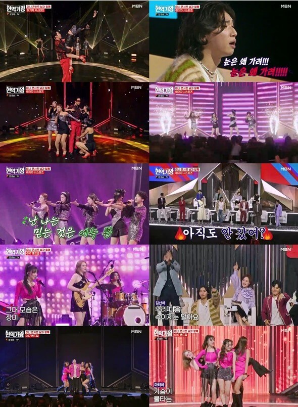 첫 번째 무대는 반가희, 김소유, 하이량, 신미래, 마스크걸로 구성된 이기자 시스터즈가 남자 게스트 에녹과 무대를 꾸몄고, 연예인 판정단 점수에서는 166점을 받았어요. 그리고 두 번째 무대에서는 두리, 조정민, 김나희, 마리아, 김산하로 구성된 007 밴드걸이 남자 게스트 한해와 무대를 꾸몄고 연예인 판정단 점수에서는 189점을 받았어요.