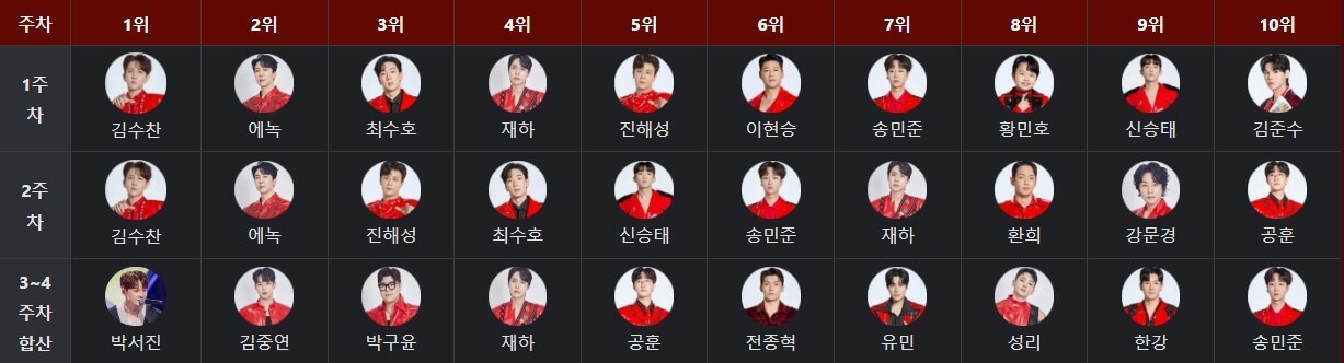 지난주에 3~4주 차 현역가왕2 투표하기 결과가 공개되었는데요~ 2주차까지만해도 순위권에 없었던 박서진이 3~4주차에서는 단숨에 1위를 차지했어요. 저도 미스터리현역으로 박서진이 출연하기로 했다는 얘길 듣고서 박서진은 TOP7에 무난하게 들어가겠구나 생각했었는데 매주 달라지는 투표 결과에 최종 TOP7은 누가될지 더욱 궁금해지는것 같아요.