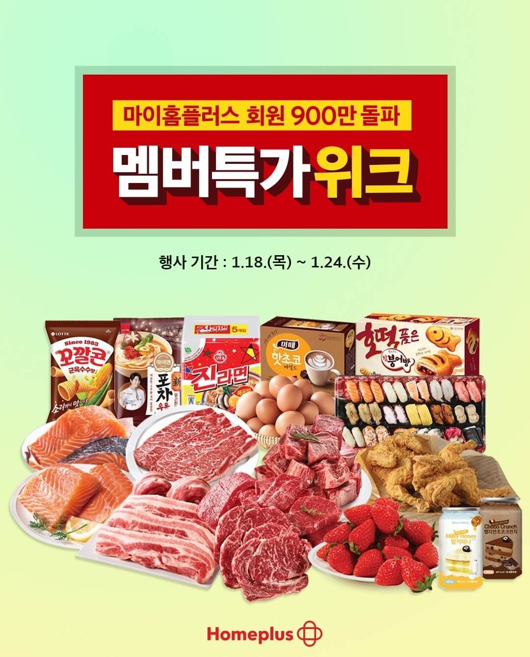 생각보다 홈플러스 인터넷 쇼핑몰을 이용하는분들이 많으신지 마이홈플러스 멤버십 회원이 900만 명을 넘었다고 하더라고요~ 홈플 ONE 등급제 혜택을 받은 고객수는 오프라인 등급제 대비 5배 이상 늘어나고 2~30대 멤버십 회원수도 3년 전보다 20%가량 증가했을 정도라고 하는데 이번 포인트 9배 적립 멤버특가 행사는 홈플러스 인터넷 쇼핑몰 멤버십 회원을 대상으로 하는 행사로 신선식품부터 가공식품, 생활용품 등을 최대 50% 할인하여 선보이고 있어요.