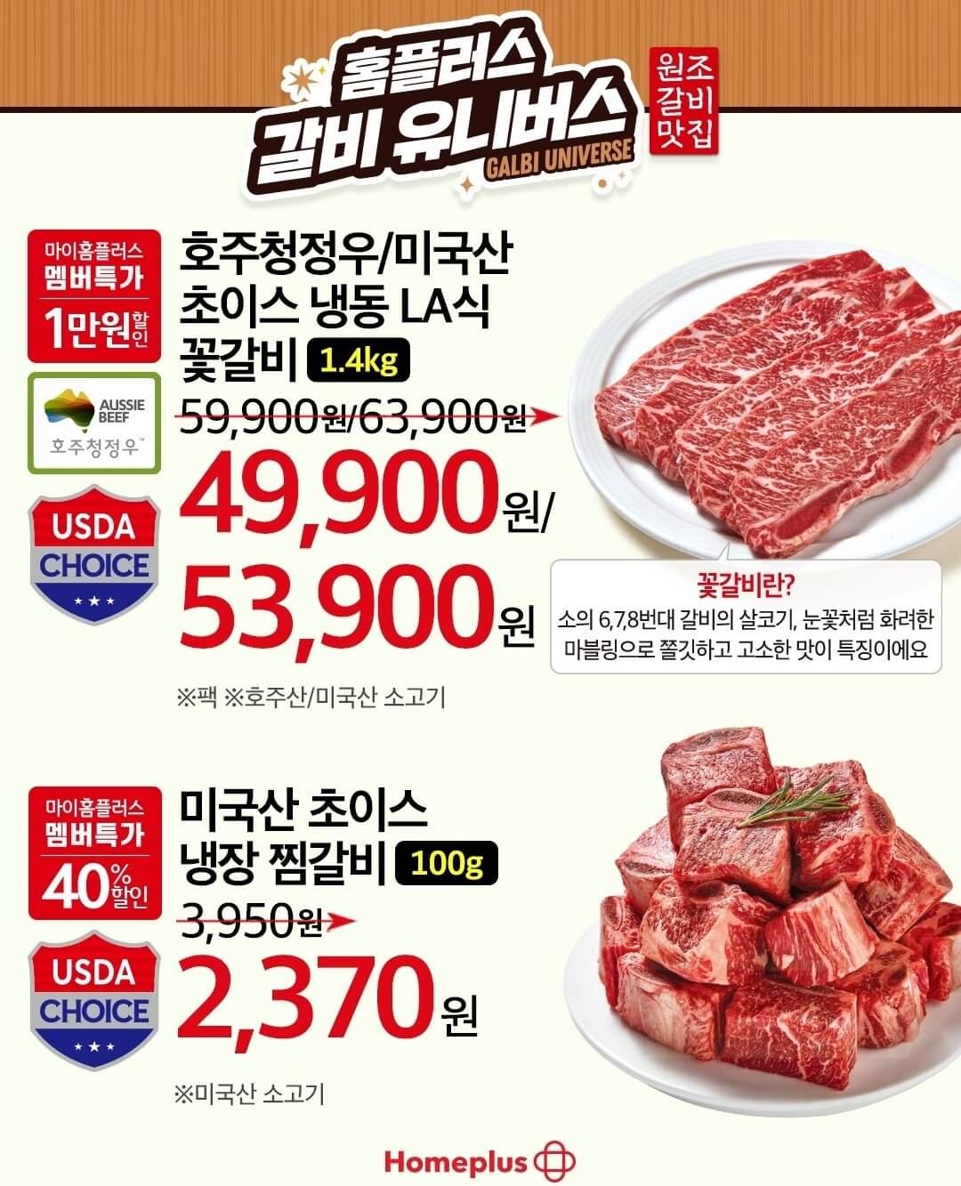 그리고 이번 행사에서 가장 좋았던 건 갈비 유니버스 행사였는데요~ 이마트에 이어서 홈플러스에서도 국산 및 수입산 갈비를 최대 50% 할인된 가격으로 선보인 다고 해요. 또, 아이들 방학으로 인해서 평소보다 식비가 더 부담되는 계절이기도 한데 떡갈비, 갈비찜, 갈미만두 등을 1+1으로 판매하고 육류와 어울리는 후식상품들도 합리적인 가격으로 선보이고 있으니 홈플러스 인터넷 쇼핑몰에서 둘러보고 시간 되면 매장에 직접 가보시는 것도 좋을 것 같아요.