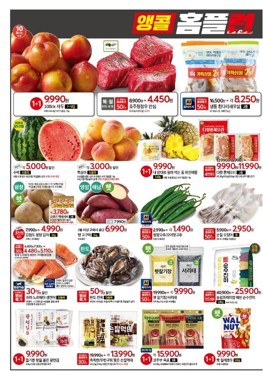 홈플러스 홈플런 행사가 끝나고 허전하려던 찰나 홈플러스에서는 2주 동안 앵콜 홈플런을 진행한다고 해요. 앵콜 홈플런에서는 지난 행사의 대표 인기 제품들을 엄선하여 최대 50% 할인 및 원플러스 원 혜택을 제공한다고 하는데요~ 그럼 첫 주차 홈플러스 앵콜 홈플런 전단지 상품들을 살펴볼게요.