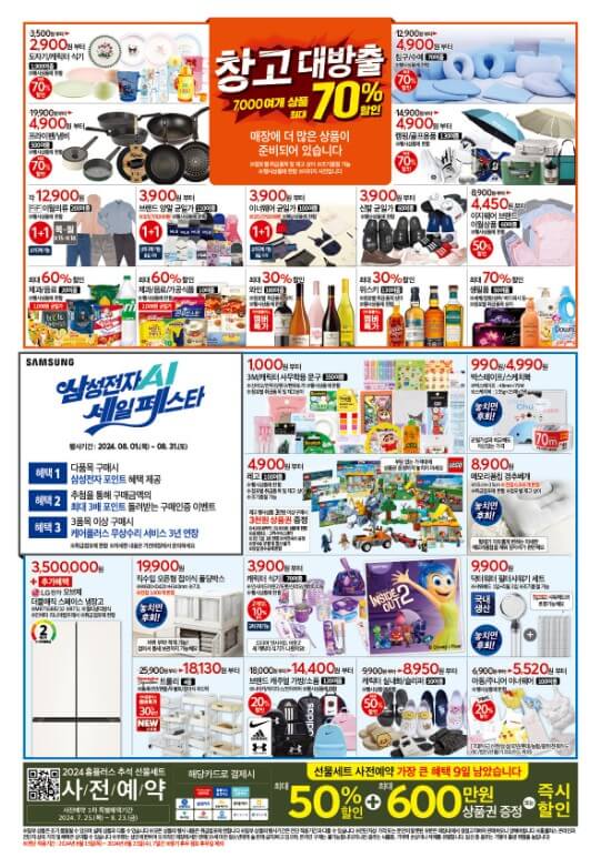 그리고 홈플러스 행사 기간 동안에는 먹거리도 먹거리지만 창고 대방출 또한 빼놓을 수 없는데요~ 다양한 문구용품들과 주방용품들도 최대 할인가로 만나볼 수 있으니까 놓치지 마세요.