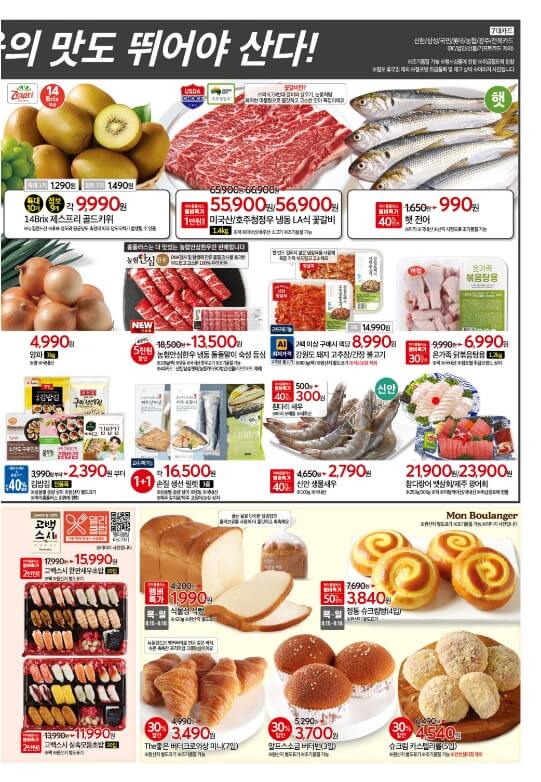 그리고 큼직한 실속두부 500g과 CJ 유기농 콩나물 270g은 각 990원에 선보이고, 당당 두 마리 옛날 통닭도 9,990원에 선보인 다고 해요. 단, 옛날 통닭은 밀양점, 영도점은 제외된다니까 참고하세요.