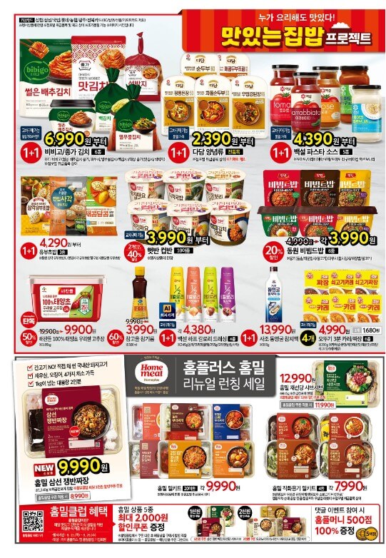 저는 저번 홈플러스 홈플런 기간에 식료품을 많이 구매했었는데 이번 앵콜 홈플러스에서도 맛있는 집밥 프로젝트를 통해 다양한 식료품들을 최적가로 선보인 다고 해요.
