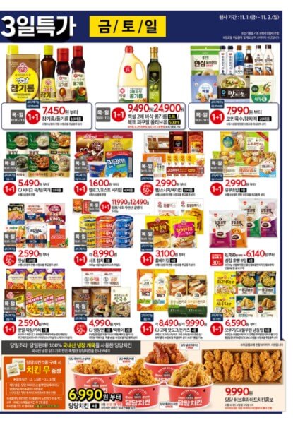 무엇보다 11월 역대급 메가 3일 특가에서는 각종 농수산물과 식재료 및 생필품들을 50% 할인 또는 1+1으로 구매할 수 있으니까 가까운 홈플러스 매장에 구경삼아 다녀와보시는 것도 좋을 것 같아요.